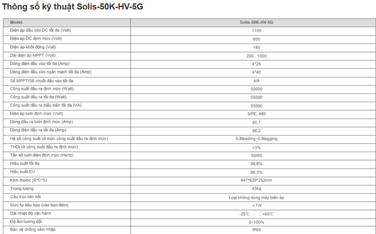 Mô tả Biến tần hòa lưới Solis-50K-HV-5G