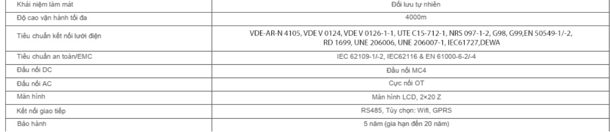* Dải điện áp MPPT : 200V ~ 1000V