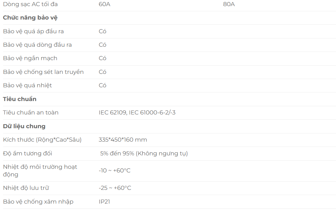 • Bộ sạc AC lên đến 80A và bộ sạc năng lượng mặt trời lên đến 100A