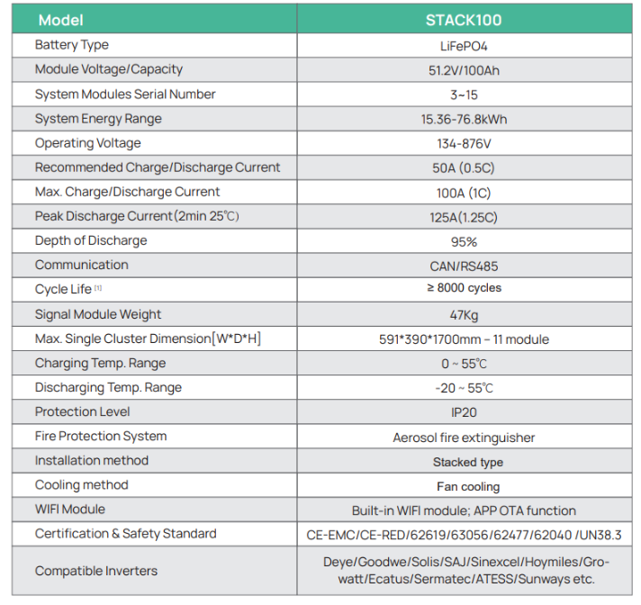 Thông số kỹ thuật của Lithium baterry Dyness STACK100: